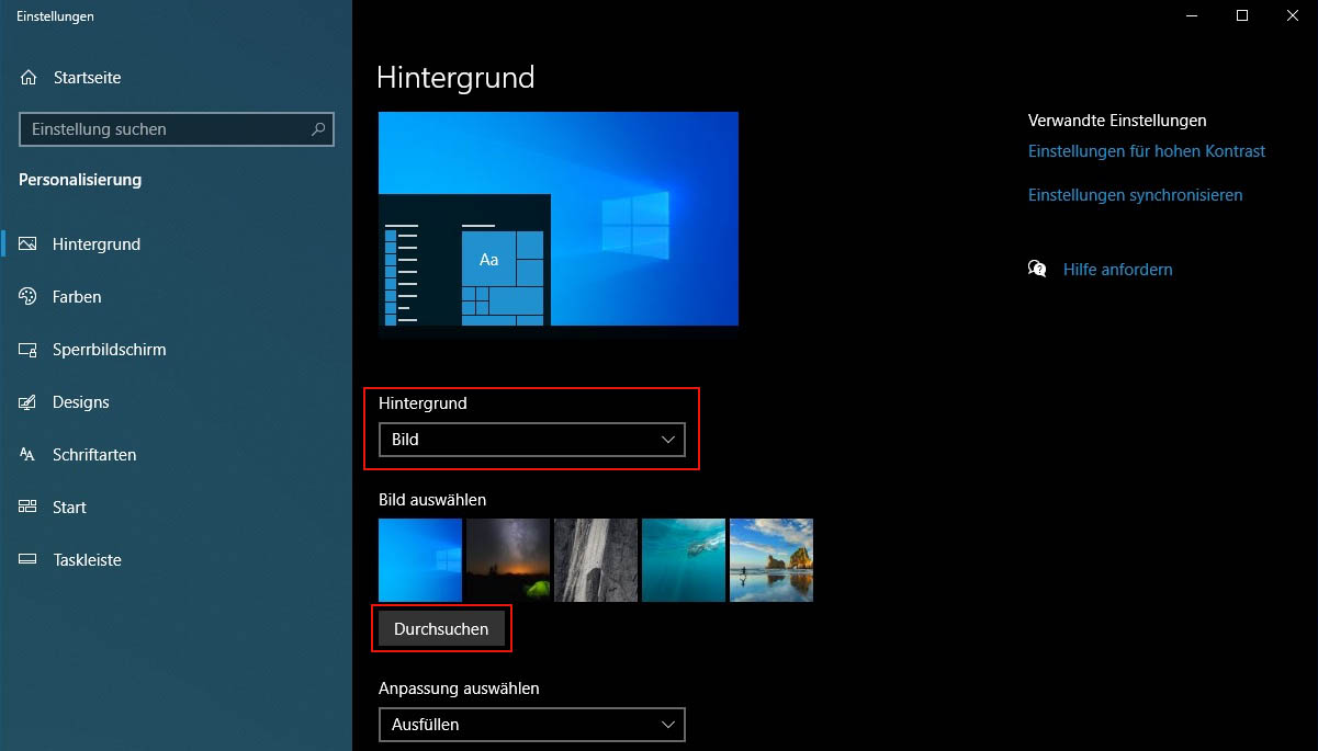 Damit es bildschirmfüllend (also ohne Ränder drumherum) erscheint, achten Sie anschließend noch darauf, im Dropdown-Menü "Anpassung auswählen" den Eintrag "Ausfüllen" auszuwählen.
