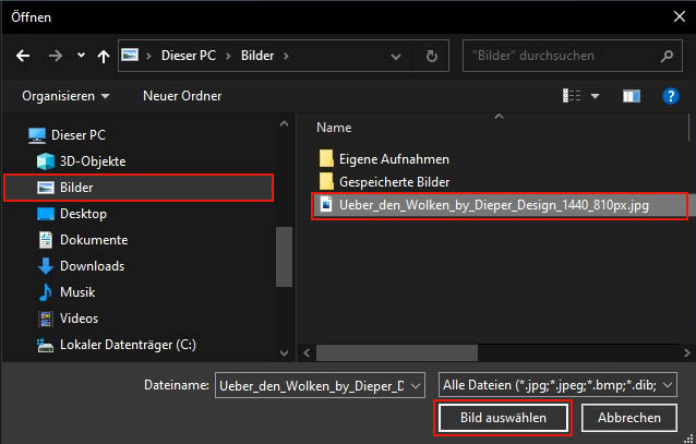 Sie speichern das Bild Ihrer Wahl (mit Rechtsklick auf das Bild im Webbrowser) z.B. in das Verzeichnis "Bilder" auf Ihrem PC.