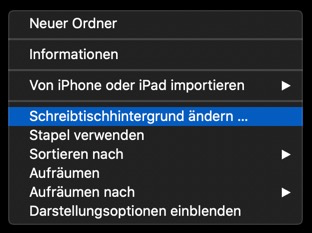 Klicken Sie mit der rechten Maustaste auf den Desktop Ihres Macs. Im nun eingeblendeten Kontextmenü wählen Sie den Eintrag "Schreibtischhintergrund ändern..."