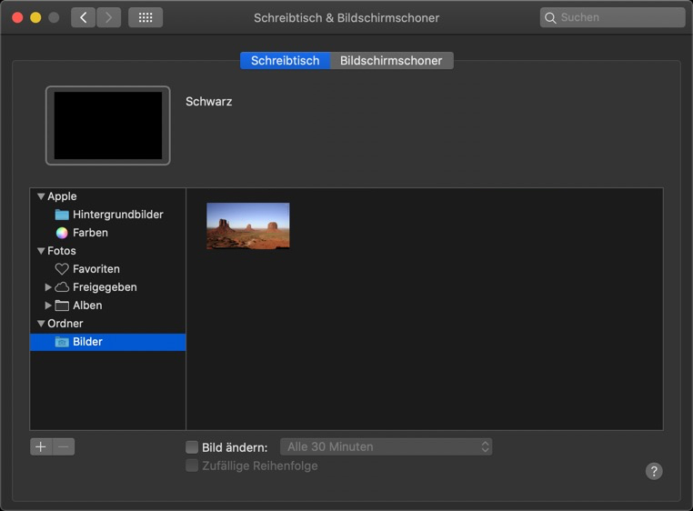 Das Fenster "Schreibtisch & Bildschirmschoner" können Sie nun schließen (Klick auf roter Punkt oben links).